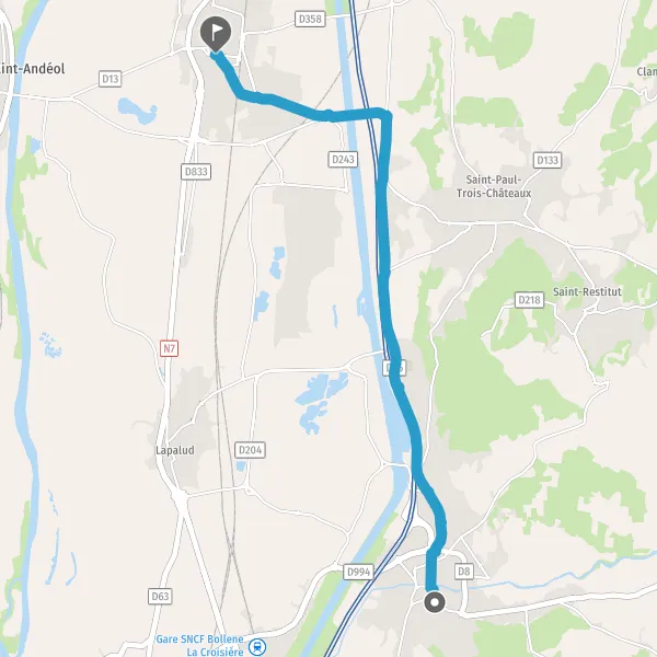 Au rond-point, prendre la 1ère sortie sur D243 (Route du Site de Tricastin) et continuer sur 1,5 kilomètre
