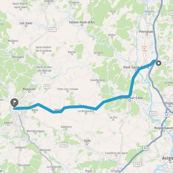 Continuer D6 (Route de Sabran) sur 12 kilomètres