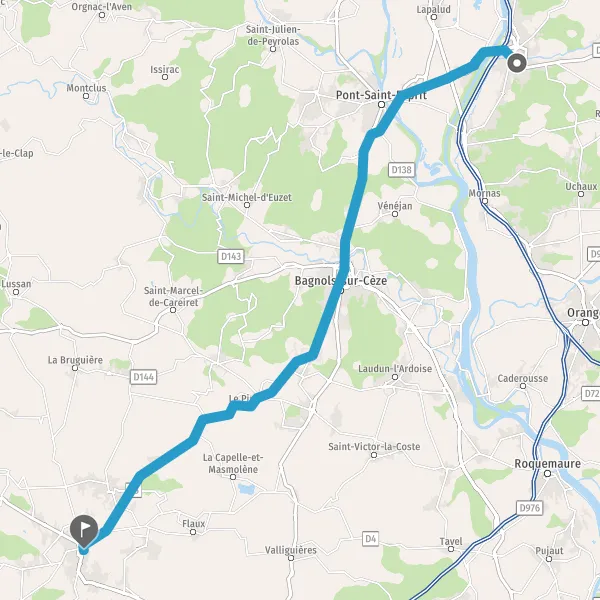 Au rond-point, prendre la 2ème sortie sur D5 (Route de Bagnols) et continuer sur 7,3 kilomètres
