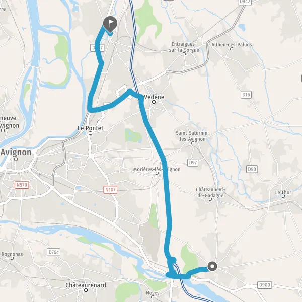 Tourner légèrement à droite sur D6 (Route de Vedène) et continuer sur 1,6 kilomètre
