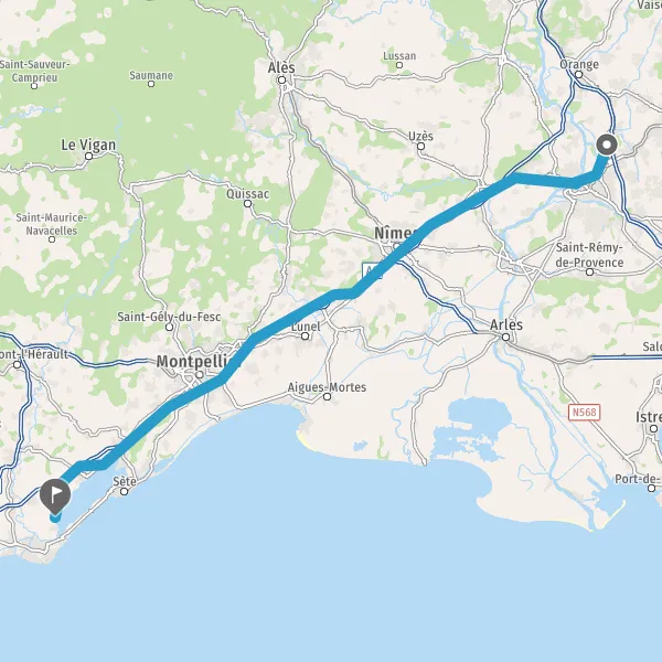 Tourner légèrement à droite sur N100 (Route Nationale de Montpellier à Avignon) et continuer sur 2,1 kilomètres