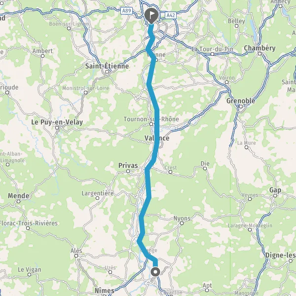 Avec le mode voiture, vous pouvez configurer vos options (type de véhicule, autoroute ou non, péage ou non, distance la plus courte), tout en ayant accès aux infos de circulation grâce à notre service d'info-trafic en temps réel. Ainsi faites des économies sur le coût ou la durée de votre voyage, en trouvant le trajet Sorgues Lyon adapté à vos besoins.