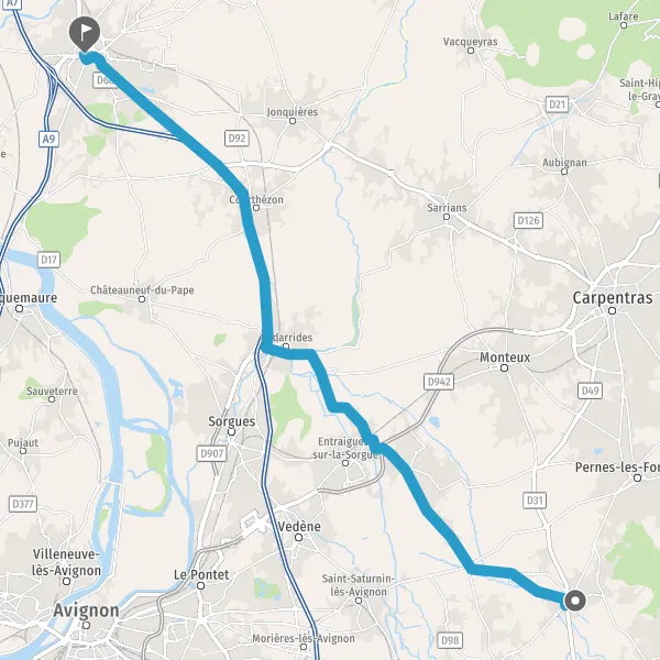 Tourner légèrement à droite sur D16 (Avenue de Bédarrides) et continuer sur 2,2 kilomètres
