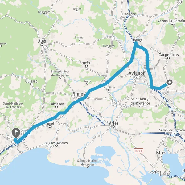 Au rond-point, faire demi-tour et continuer sur N129 (Route de Marseille) sur 350 mètres