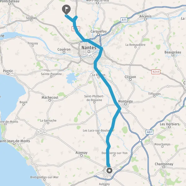 Au rond-point, prendre la 2ème sortie sur D937 (Route de Nantes) et continuer sur 7,8 kilomètres