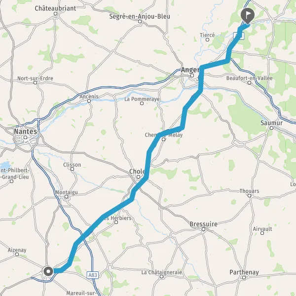 Continuer et rejoindre A87. Continuer sur 126 kilomètres