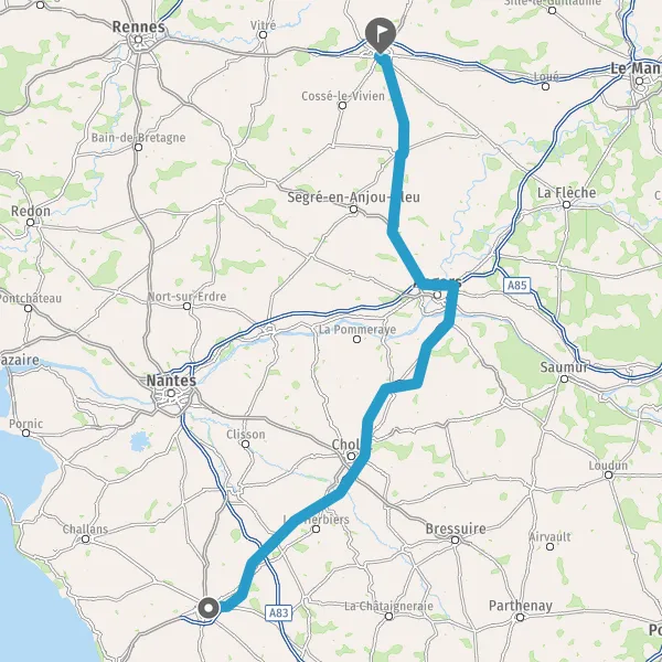 Continuer et rejoindre A87. Continuer sur 126 kilomètres