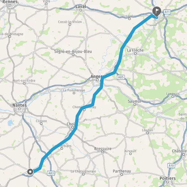 Continuer et rejoindre A87. Continuer sur 126 kilomètres