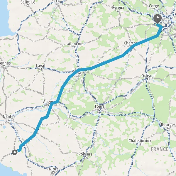 Prendre à droite et rejoindre A11 E60 E501. Continuer sur 234 kilomètres
