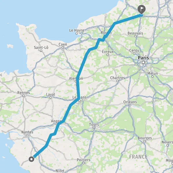 Prendre à droite et rejoindre A11 E60 E501. Continuer sur 87 kilomètres