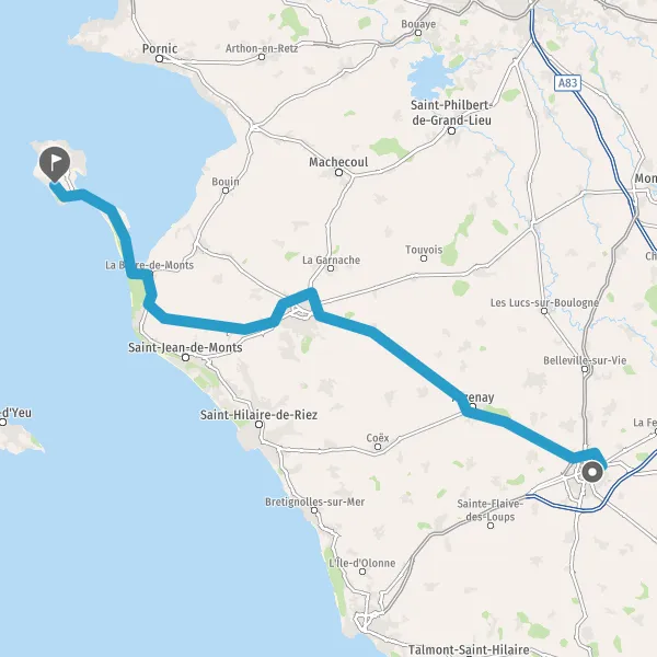 Prendre à droite et rejoindre D948 (Route de Challans). Continuer sur 19 kilomètres