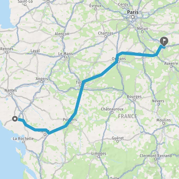 Prendre à droite et rejoindre A83 E3. Continuer sur 80 kilomètres