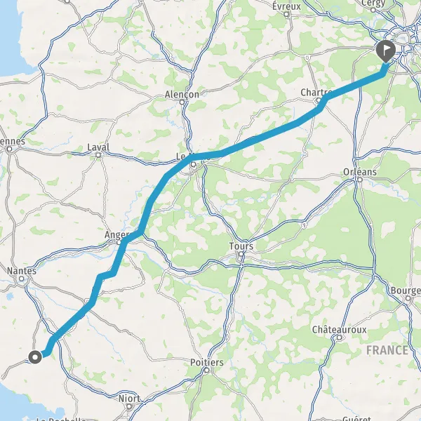 Prendre à droite et rejoindre A11 E60 E501. Continuer sur 234 kilomètres