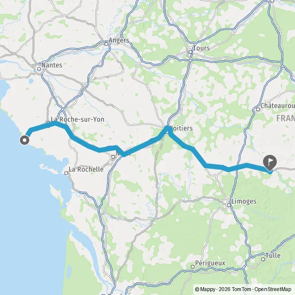 Prendre à droite et rejoindre A83 E3. Continuer sur 80 kilomètres