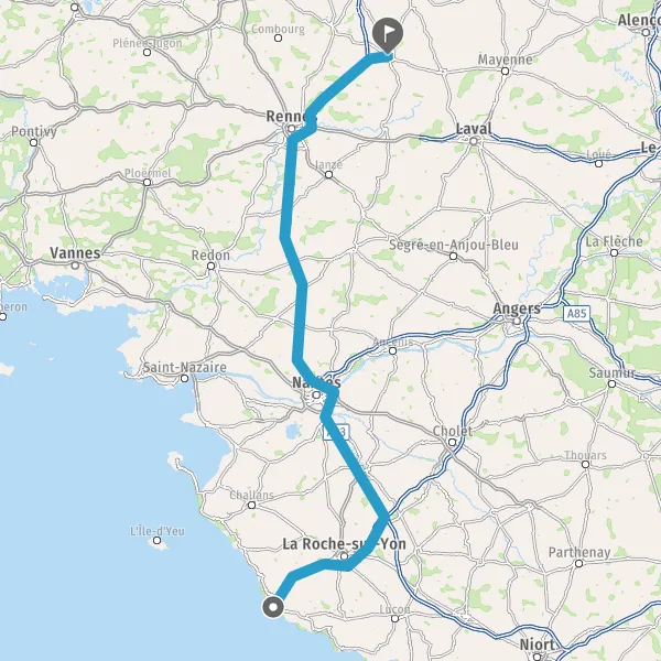 Continuer et rejoindre A83 E3. Continuer sur 48 kilomètres
