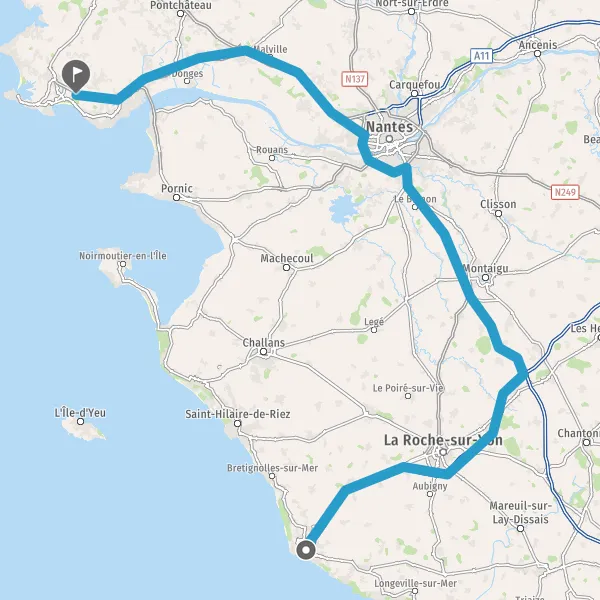 Au rond-point, prendre la 3ème sortie sur D13 (Route de Pornic) et continuer sur 31 kilomètres