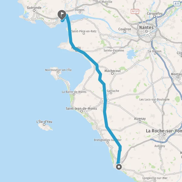 Au rond-point, prendre la 3ème sortie sur D13 (Route de Pornic) et continuer sur 31 kilomètres