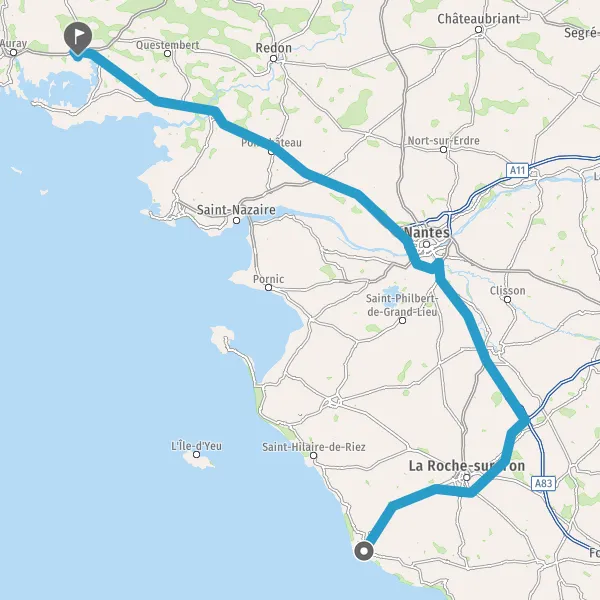 Continuer et rejoindre A83 E3. Continuer sur 48 kilomètres