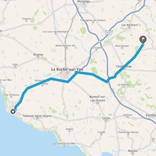 Au rond-point, prendre la 2ème sortie sur D36 (Route du Château d'Olonne) et continuer sur 1,2 kilomètre