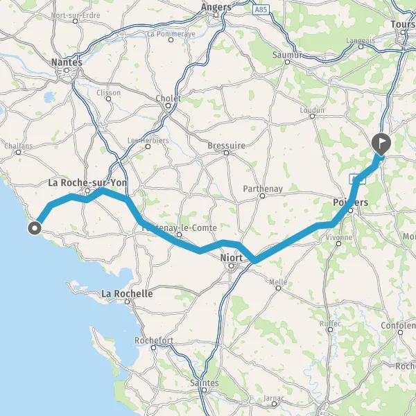 Prendre à droite et rejoindre A83 E3. Continuer sur 80 kilomètres