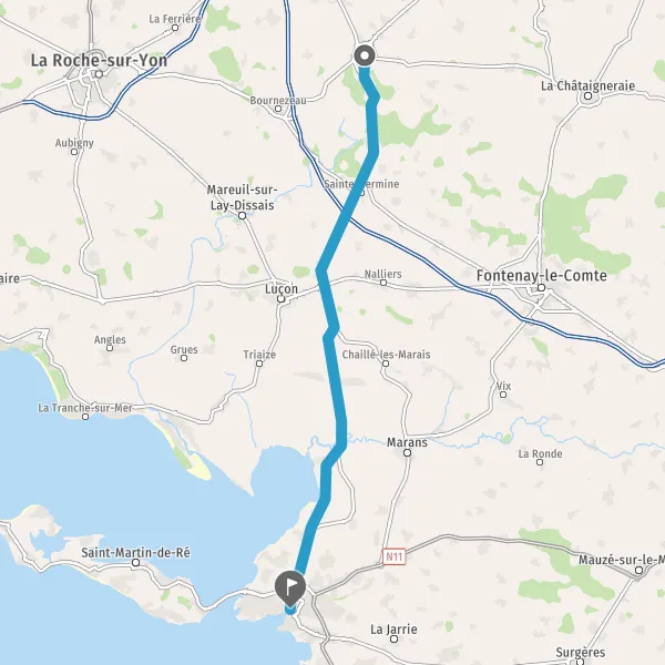 Au rond-point, prendre la 1ère sortie sur D105e D105 (Rue de La Rochelle) et continuer sur 4,6 kilomètres