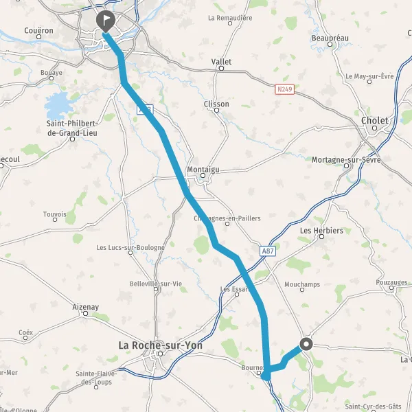 Continuer et rejoindre A83 E3. Continuer sur 69 kilomètres