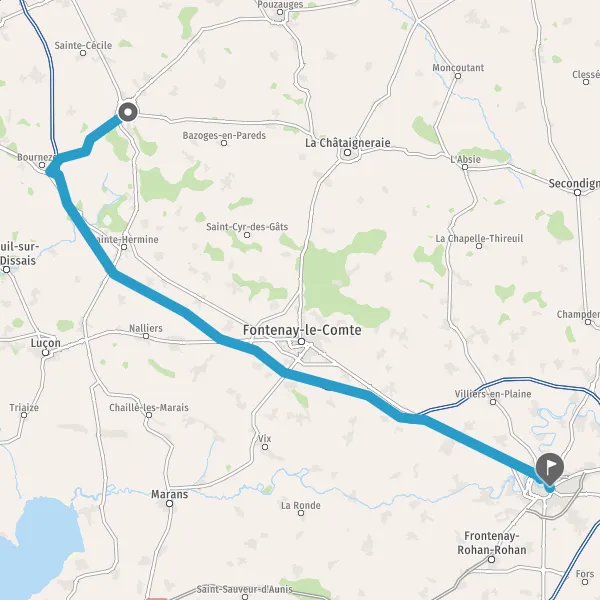 Au rond-point, prendre la 1ère sortie sur D148 (Route de Niort) et continuer sur 1,6 kilomètre