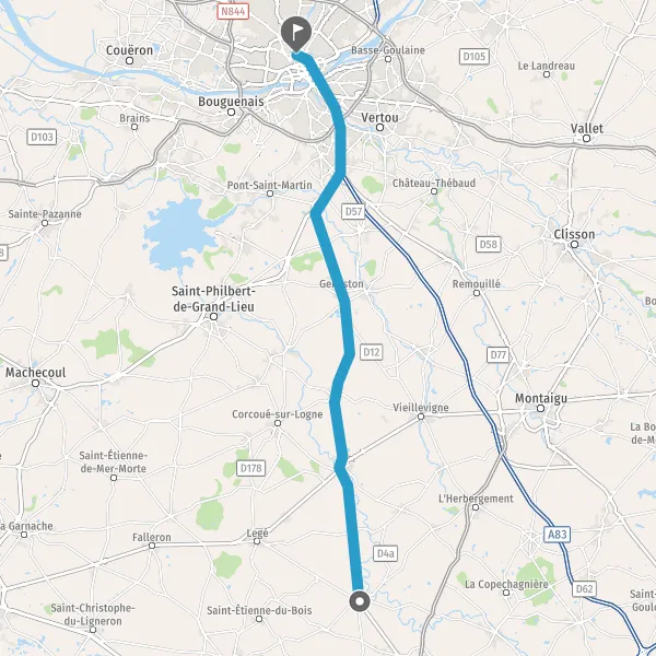 Au rond-point, prendre la 2ème sortie sur D937 (Bourgneuf) et continuer sur 9,5 kilomètres