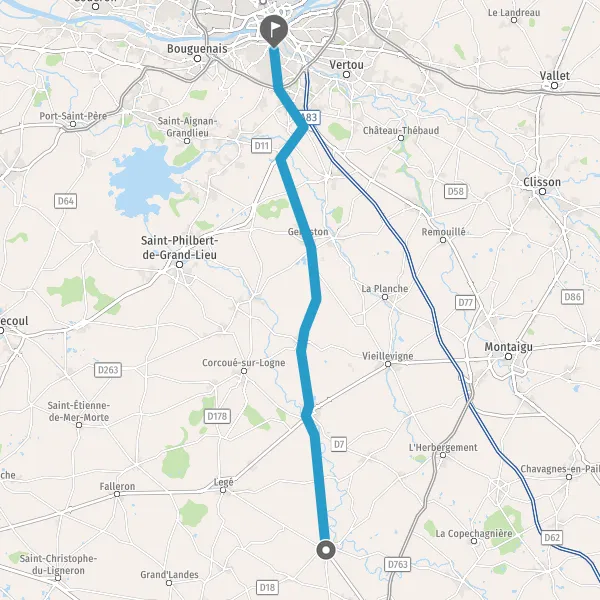 Au rond-point, prendre la 2ème sortie sur Rue des Sorinières et continuer sur 130 mètres