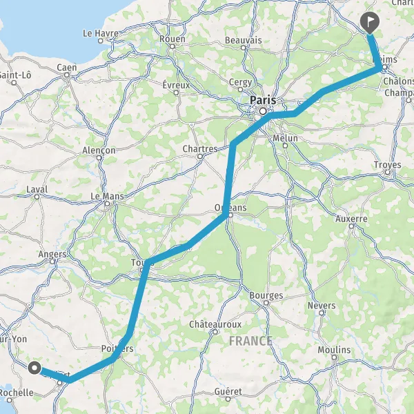 A83BordeauxPoitiersNiortAngersNantesLa Roche-sur-Yon