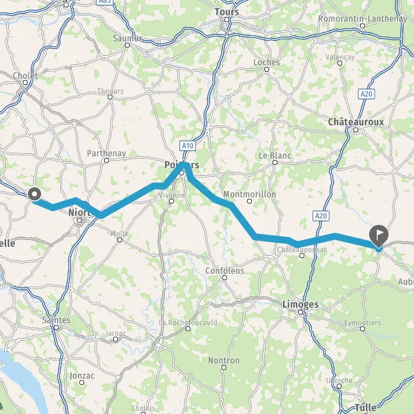A83BordeauxPoitiersNiortAngersNantesLa Roche-sur-Yon