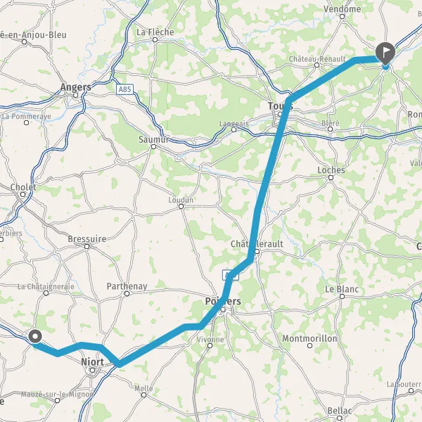 A83BordeauxPoitiersNiortAngersNantesLa Roche-sur-Yon