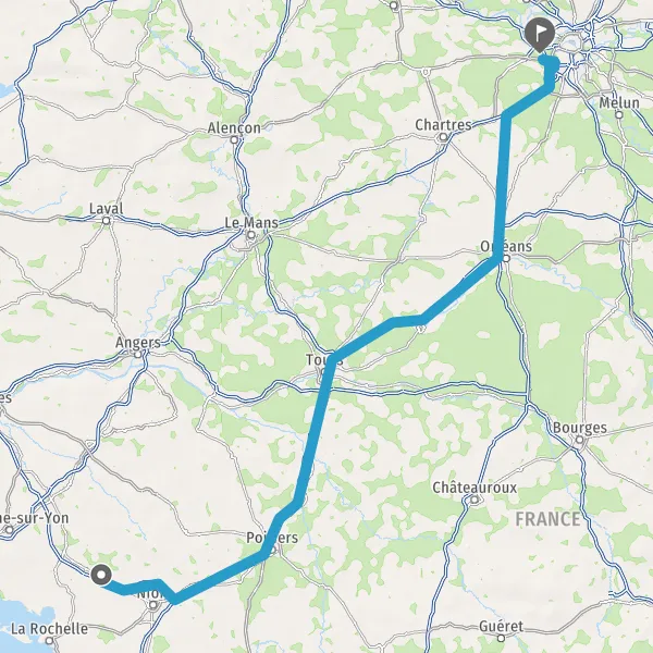 A83BordeauxPoitiersNiortAngersNantesLa Roche-sur-Yon