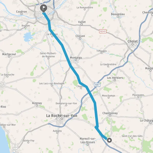 Continuer et rejoindre A83 E3. Continuer sur 69 kilomètres