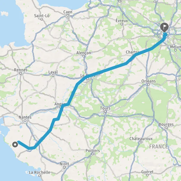 Prendre à droite et rejoindre A11 E60 E501. Continuer sur 234 kilomètres