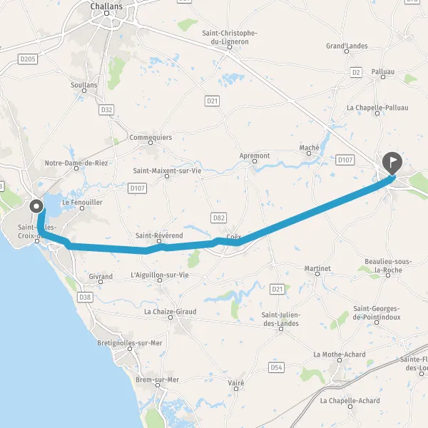 Au rond-point, prendre la 4ème sortie sur D6 (Route d'Aizenay) et continuer sur 8,6 kilomètres