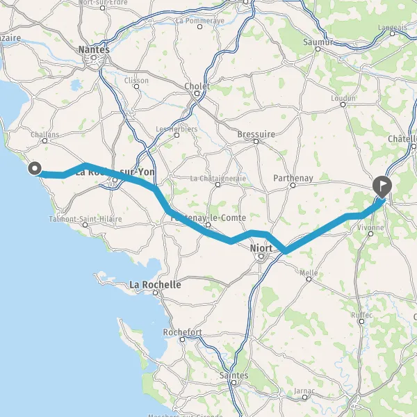 Prendre à droite et rejoindre A83 E3. Continuer sur 80 kilomètres