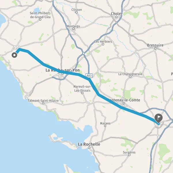 Prendre à droite et rejoindre A83 E3. Continuer sur 49 kilomètres