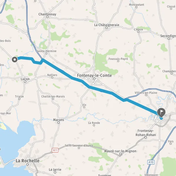 Au rond-point, prendre la 2ème sortie sur D148 (Route de Fontenay-le-Comte) et continuer sur 1,8 kilomètre