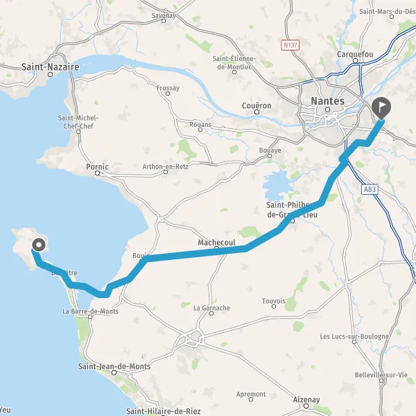 Au rond-point, prendre la 2ème sortie sur D948 (Route de Noirmoutier) et continuer sur 650 mètres