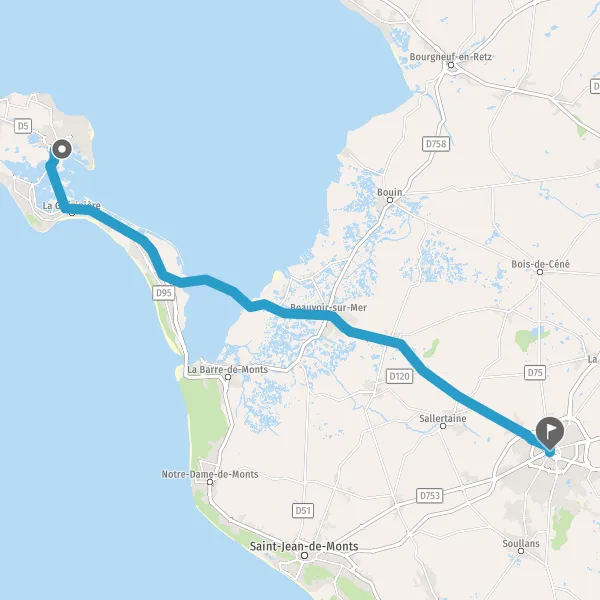 Au rond-point, prendre la 3ème sortie sur D948 (Route du Gois) et continuer sur 10 kilomètres