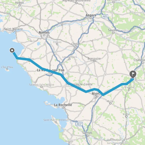 Prendre à droite et rejoindre A83 E3. Continuer sur 80 kilomètres