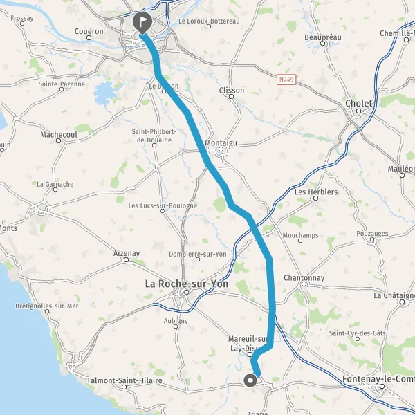 Continuer et rejoindre A83 E3. Continuer sur 69 kilomètres