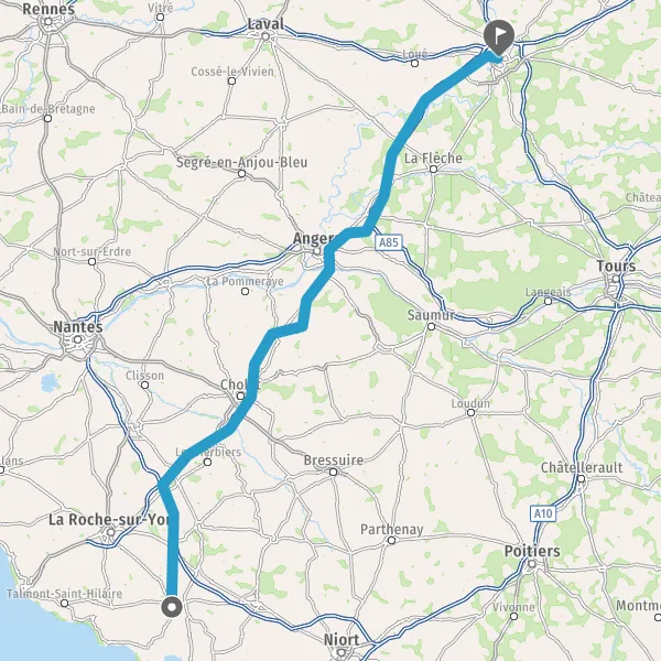 Prendre à droite et rejoindre A87. Continuer sur 105 kilomètres