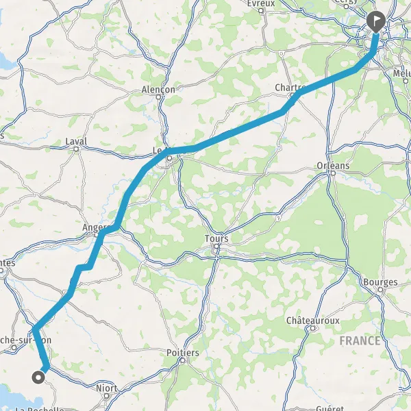 Prendre à droite et rejoindre A11 E60 E501. Continuer sur 234 kilomètres