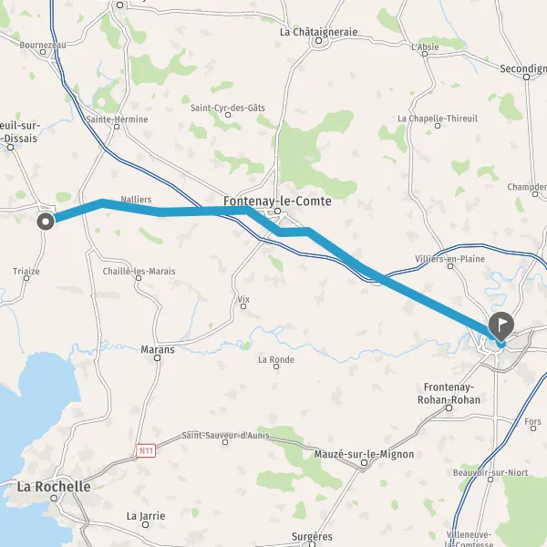 Au rond-point, prendre la 2ème sortie sur D148 (Route de Fontenay-le-Comte) et continuer sur 1,8 kilomètre