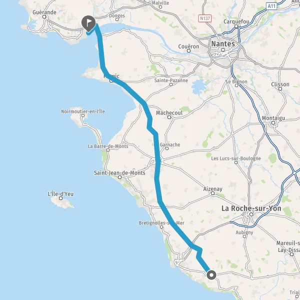 Au rond-point, prendre la 3ème sortie sur D13 (Route de Pornic) et continuer sur 31 kilomètres