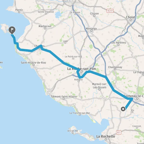 Prendre à droite et rejoindre D948 (Route de Challans). Continuer sur 19 kilomètres