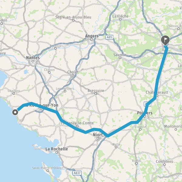 Prendre à droite et rejoindre A83 E3. Continuer sur 80 kilomètres