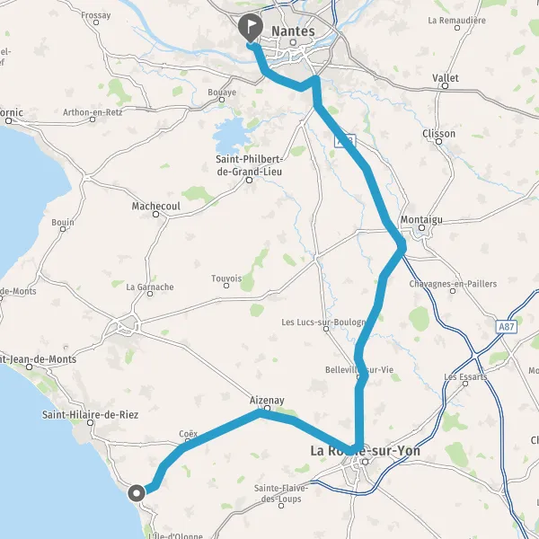 Au rond-point, prendre la 2ème sortie sur D937 (Route de Nantes) et continuer sur 7,8 kilomètres